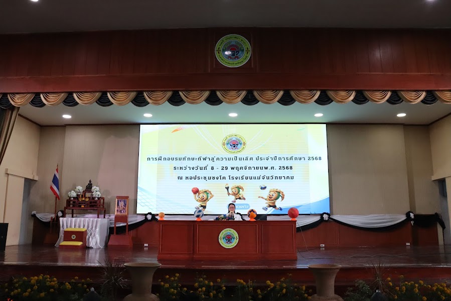 ในวันที่ 14 พฤศจิกายน 2568 นายกุศล มีปัญญา ผู้อำนวยการโรงเรียนแม่จันวิทยาคม มอบหมายให้ นางอลิศลา ริยะสาร รองผู้อำนวยการโรงเรียน เป็นประธานในพิธีเปิดกิจกรรม การฝึกอบรมทักษะกีฬาสู่ความเป็นเลิศ” ประจำปีการศึกษา 2568 จัดขุ้นระหว่างวันที่ 8 – 29 พฤศจิกายน 2568 พร้อมทั้งกล่าวให้โอวาทแก่ผู้เข้าร่วม อีกทั้งมอบกำลังใจแก่นักเรียนผู้เข้าฝึกอบรม ภายในงานมีรองผู้อำนวยการโรงเรียน คณะครู บุคลากร ทางการศึกษา และครูผู้รับผิดชอบจากกลุ่มสาระการเรียนรู้สุขศึกษาและพลศึกษา เข้าร่วมดูแลและดำเนินกิจกรรมอย่างใกล้ชิด ณ หอประชุมชงโค โรงเรียนแม่จันวิทยาคม เพื่อพัฒนาศักยภาพด้านทักษะกีฬาและส่งเสริมความรู้ความเข้าใจเกี่ยวกับกีฬาสากลให้แก่นักเรียนในทุกระดับชั้น กิจกรรมการฝึกอบรมในครั้งนี้มีวัตถุประสงค์สำคัญเพื่อให้นักเรียนมีความรู้และความเข้าใจเกี่ยวกับกีฬาสากล พัฒนาทักษะด้านกีฬาสากลอย่างถูกต้องตามหลักวิชาการ ส่งเสริมให้นักเรียนนำความรู้และทักษะไปประยุกต์ใช้ในการแข่งขันกีฬาในระดับต่าง ๆ รวมถึงการพัฒนาตนเองสู่ความเป็นเลิศทางกีฬาในอนาคต ทางโรงเรียนมุ่งหวังว่าการจัดกิจกรรมครั้งนี้จะช่วยเสริมสร้างศักยภาพผู้เรียน ให้พร้อมก้าวสู่การเป็นผู้มีวินัย ใฝ่เรียนรู้และพัฒนาตนเองอย่างต่อเนื่อง