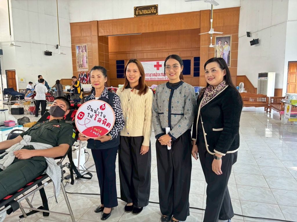 ในวันที่ 3 ธันวาคม 2568 นายกุศล มีปัญญา ผู้อำนวยการโรงเรียนแม่จันวิทยาคม มอบหมายให้ นางสาวทัศนีย์ ศรีสวัสดิ์ รองผู้อำนวยการโรงเรียน พร้อมด้วย นางสาวนิศารัตน์ ฟองสมุทร นางสาวกมลพร ศรีมาชัย และนางสาววิชชุตา จันต๊ะคาด นำนักเรียนโรงเรียนแม่จันวิทยาคม เข้าร่วมบริจาคโลหิต ด้วยสำนักงานเหล่ากาชาดจังหวัดเชียงราย ร่วมกับหน่วยรับบริจาคโลหิตเคลื่อนที่ โรงพยาบาลเชียงรายประชานุเคราะห์ ได้กําหนดแผนการออกรับบริจาคโลหิต ครั้งที่ 4 ประจําปี 2568 ณ หอประชุมที่ว่าการอำเภอแม่จัน จังหวัดเชียงราย ร่วมเป็นส่วนหนึ่งในการสนับสนุนภารกิจของสภากาชาดไทยและเหล่ากาชาดจังหวัดเชียงราย เพื่อจัดหาโลหิตที่ปลอดภัยและได้มาตรฐานไปช่วยชีวิตผู้ป่วยที่ต้องการโลหิตอย่างเร่งด่วนตามโรงพยาบาลต่างๆ ได้เพียงพอตามความต้องการ