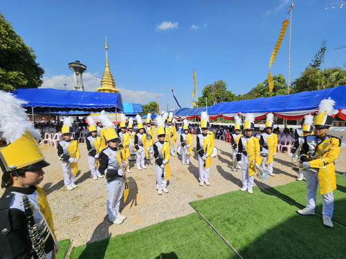 วันที่ 25 มกราคม 2569 นายกุศล มีปัญญา ผู้อำนวยการโรงเรียนแม่จันวิทยาคม มอบหมายให้ นายสมศักดิ์ ช่างศิลป์ และ นายวัฒน ลาพิงค์ ครูกลุ่มสาระการเรียนรู้ศิลปะ นำนักเรียน วงโยธวาทิต โรงเรียนแม่จันวิทยาคม เข้าร่วมขบวนในพิธีฝังลูกนิมิต ซึ่งเป็นพิธีกรรมทางพระพุทธศาสนาที่มีความสำคัญและทรงคุณค่าทางวัฒนธรรม โดยนักเรียนวงโยธวาทิตได้ร่วมบรรเลงดนตรีและแห่ขบวนฝังลูกนิมิตอย่างเป็นระเบียบ เรียบร้อย และสง่างาม สร้างบรรยากาศแห่งความศรัทธาและความสามัคคีแก่ผู้เข้าร่วมพิธี ณ วัดพระเจ้าศรีสัมฤทธิ์ (สิริพัฒนาราม) ตำบลป่าซาง อำเภอแม่จัน จังหวัดเชียงราย การเข้าร่วมกิจกรรมในครั้งนี้ นับเป็นการส่งเสริมให้นักเรียนได้เรียนรู้และมีส่วนร่วมในการทำนุบำรุงพระพุทธศาสนา สืบสานขนบธรรมเนียมประเพณีอันดีงามของท้องถิ่น ควบคู่กับการปลูกฝังคุณธรรม จริยธรรม ความมีระเบียบวินัย ความรับผิดชอบ และจิตสาธารณะ อีกทั้งยังเป็นการสร้างความสัมพันธ์อันดีระหว่างสถานศึกษา วัด และชุมชนอย่างยั่งยืน