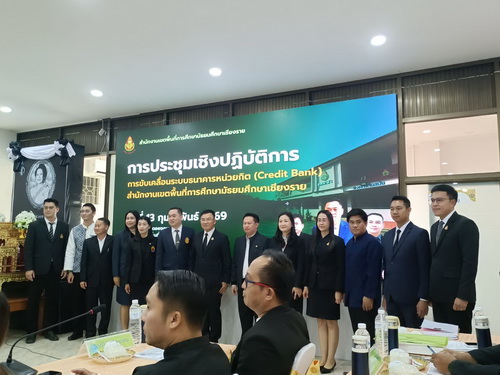 วันที่ 13 กุมภาพันธ์ พ.ศ.2569 นายกุศล มีปัญญา ผู้อำนวยการโรงเรียนแม่จันวิทยาคม มอบหมายให้ นางอริศลา ริยะสาร รองผู้อำนวยการกลุ่มบริหารงานวิชาการ พร้อมด้วย นายกฤษณะ ทาทอง ครูกลุ่มสาระการเรียนรู้สังคมศึกษา ศาสนา และวัฒนธรรม เข้าร่วมการประชุมเชิงปฏิบัติการการขับเคลื่อนระบบธนาคารหน่วยกิต (Credit Bank) สำนักงานเขตพื้นที่การศึกษามัธยมศึกษาเชียงราย และร่วมรับฟังการบรรยายพิเศษ “นโยบายการเพิ่มโอกาสและความเสมอภาคทางการศึกษา ผ่านระบบธนาคารหน่วยกิต”โดย นายเกรียงศักดิ์ ยอดสาร ผู้อำนวยการสำนักงานเขตพื้นที่การศึกษามัธยมศึกษาเชียงราย เป็นประธานในพิธีและผู้บรรยายพิเศษ ทั้งนี้ ยังได้เสริมแนวทางการเทียบโอนผลการเรียนและการจัดเก็บสะสมหน่วยกิตจากประสบการณ์จริง การถอดบทเรียน โดย ศาสตราจารย์ ดร.วิทยา จันทร์ศิลา นายกสภามหาวิทยาลัยราชภัฏลำปาง ณ หอประชุมดอยจอมทอง สำนัเขตพื้นที่การศึกษามัธยมศึกษาเชียงราย