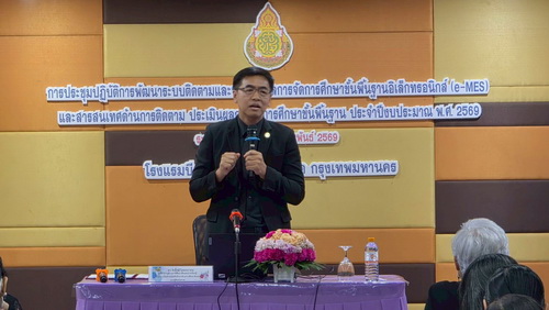 นายกุศล มีปัญญา ได้มอบหมายให้ นางสาวพิชชยานาฏ รีรักษ์ ครูกลุ่มสาระการเรียนรู้วิทยาศาสตร์และเทคโนโลยี เข้าร่วมการประชุมปฏิบัติการพัฒนาระบบติดตามและประเมินผลการจัดการศึกษาขั้นพื้นฐานทางอิเล็กทรอนิกส์ (e-MES) ประจำปีงบประมาณ พ.ศ. 2569 ซึ่งจัดโดย สำนักติดตามและประเมินผลการจัดการศึกษาขั้นพื้นฐาน ภายใต้ สำนักงานคณะกรรมการการศึกษาขั้นพื้นฐาน ระหว่างวันที่ 23–25 กุมภาพันธ์ 2569 ณ โรงแรมบียอนด์ สวีท เขตบางพลัด กรุงเทพมหานคร การประชุมครั้งนี้มีวัตถุประสงค์เพื่อออกแบบและพัฒนาระบบติดตามและประเมินผลการจัดการศึกษาขั้นพื้นฐานทางอิเล็กทรอนิกส์ (e-MES) รวมทั้งพัฒนาสารสนเทศด้านการติดตามและประเมินผลการจัดการศึกษาขั้นพื้นฐาน ประจำปีงบประมาณ พ.ศ. 2569 ให้มีความถูกต้อง ครบถ้วน ทันสมัย และมีประสิทธิภาพยิ่งขึ้น เพื่อสนับสนุนการบริหารจัดการและยกระดับคุณภาพการศึกษาขั้นพื้นฐานต่อไป